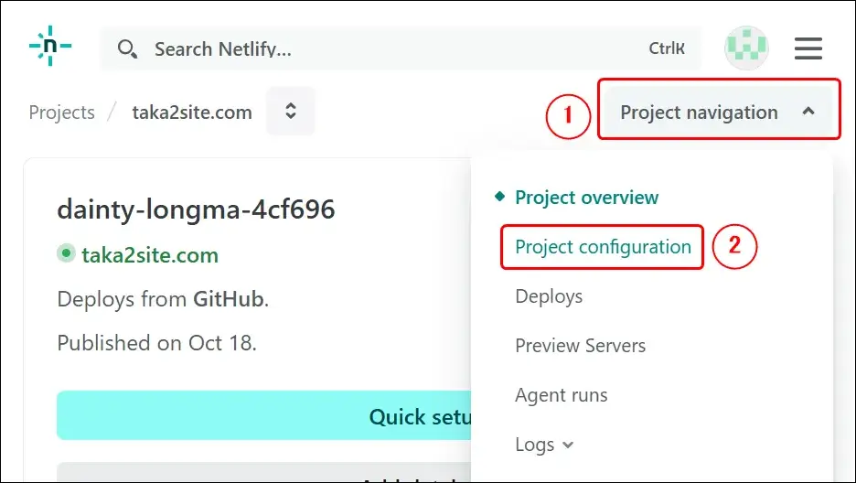 - ①「Project navigation」メニューから