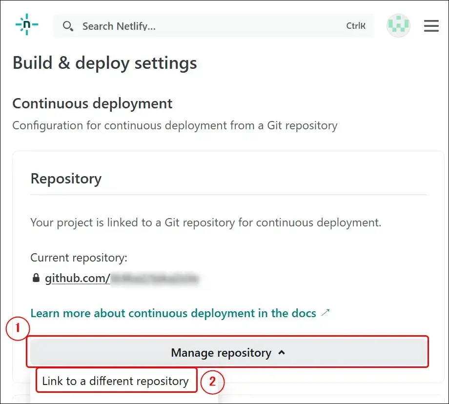 Netlifyに関連付けるGitリポジトリの変更
