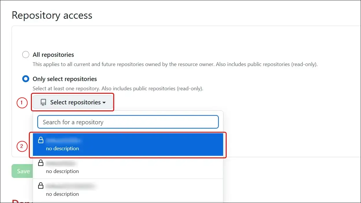 - ①「Select repositories」から