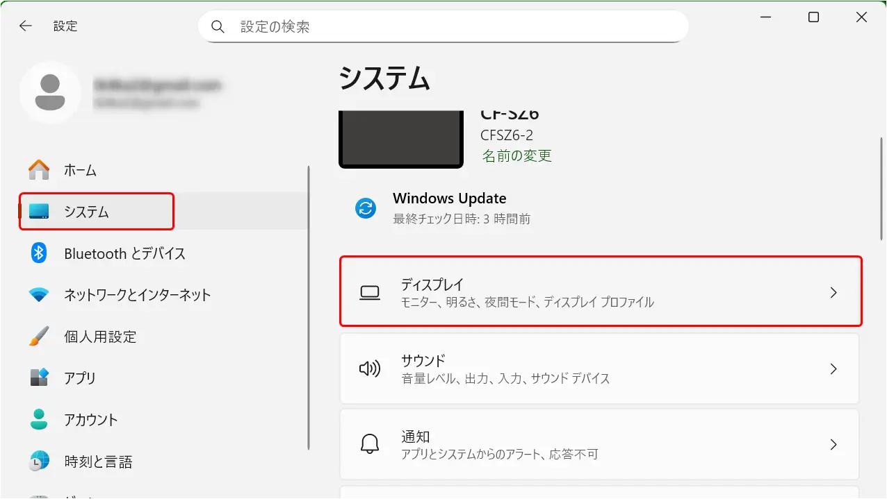 - 「システム」→「ディスプレイ」